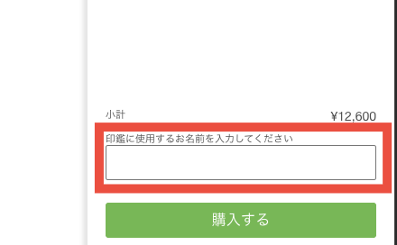 カートに入れた後、購入ボタンの前にある入力欄に、希望のお名前を入力ください。